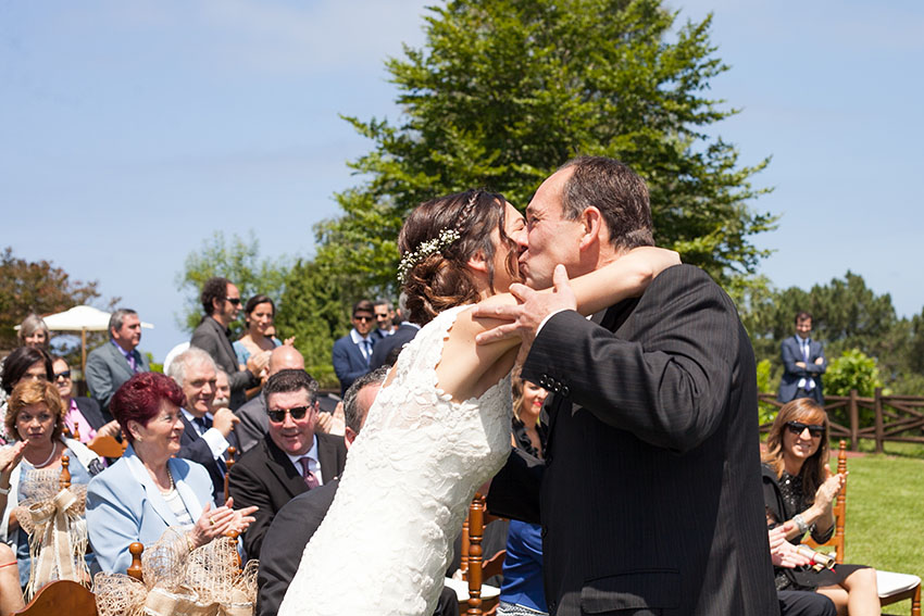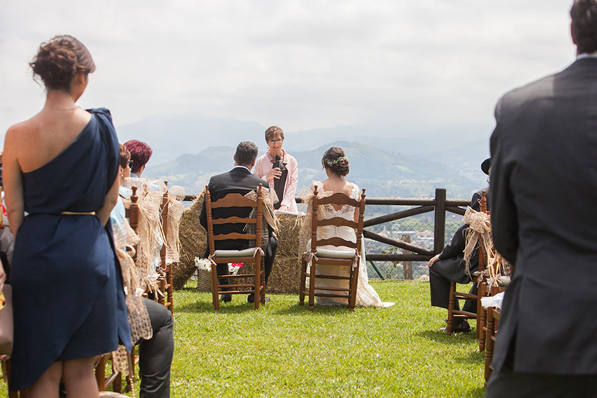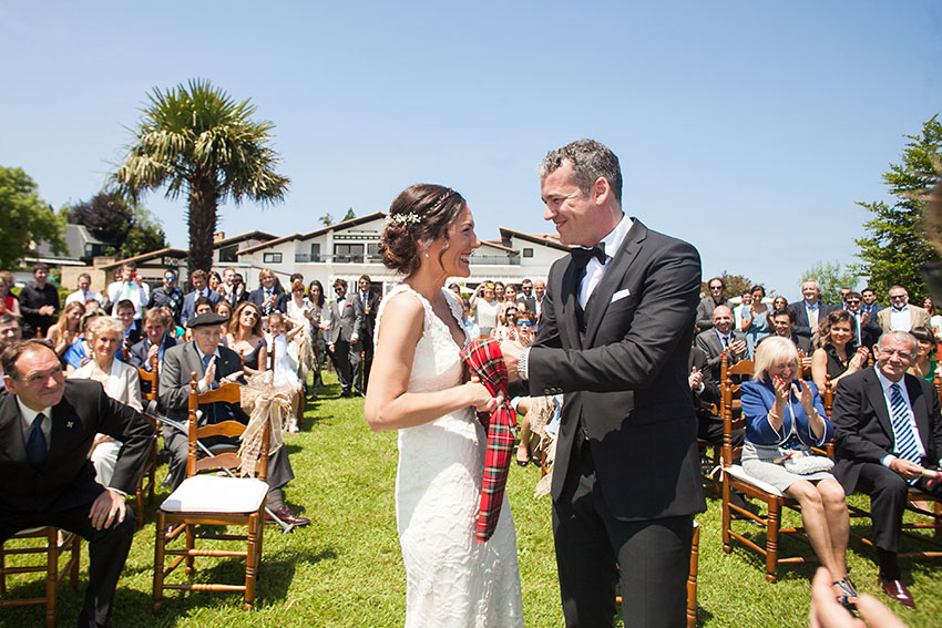 Ainara eta Aitorren ezkontzaren erreportaia hemen daukazue. Ospakizun dotore eta ikusgarria, eguraldi bikainak lagundu zuen eta lekua ezin hobea izan zen. Horrelako ezkontzak oso gustoko ditut detallez betetak, aire librean eta guztiz pertsonalak. Gudamendi hotelean izan zen zeremonia zibila, errito zelta batekin egina, eraztunak zapi eskoziar batengatik ordezkatuz. Igeldoko Lezkarri abesbatzak kantatu zuen eta Ainararen aitak ere kantatu zion bere abesti kutunena «Lehoi erregea» beste batzuen artean. Horren ondoren pintxo eta brotxetak dastatzeko ordua. Musika zuzenean ere izan zuten Latitud 43 -ren eskutik eta Aitorrek kanta eskeini zion bere andregaiari.